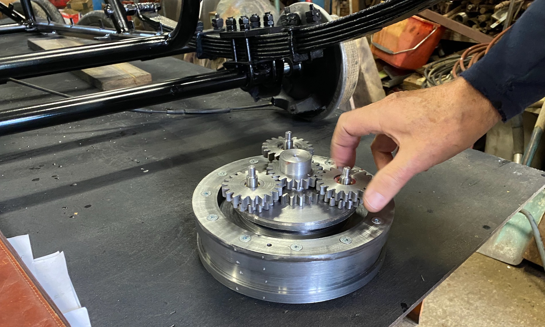 Nu har våra eldsjälar jobbat i mer än två år med att forska, undersöka, göra ritningar, konstruera och bygga. I dagsläget finns ett nytt chassi, fjädring, bromsar, bänkar, ett unikt styrsystem och en omonterad motor med koppling.