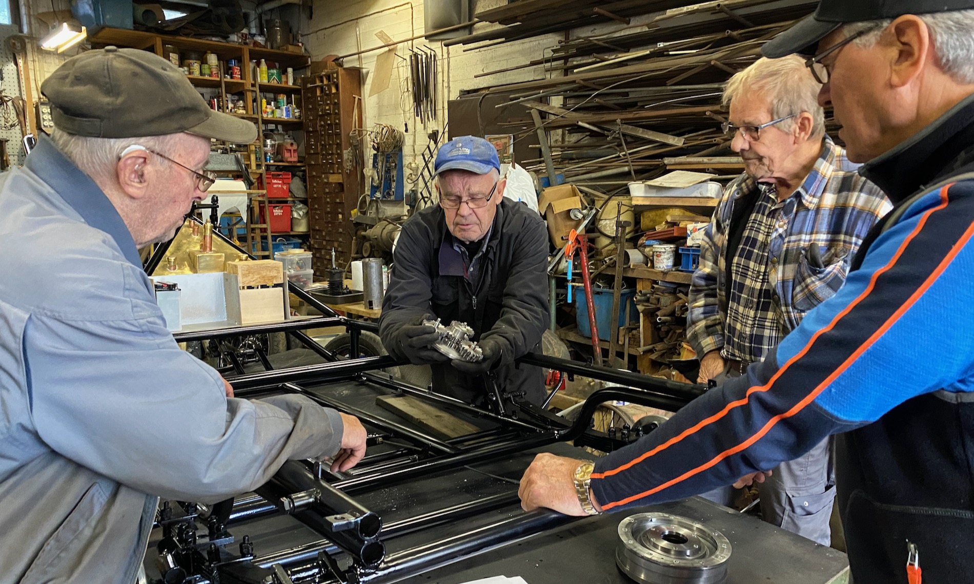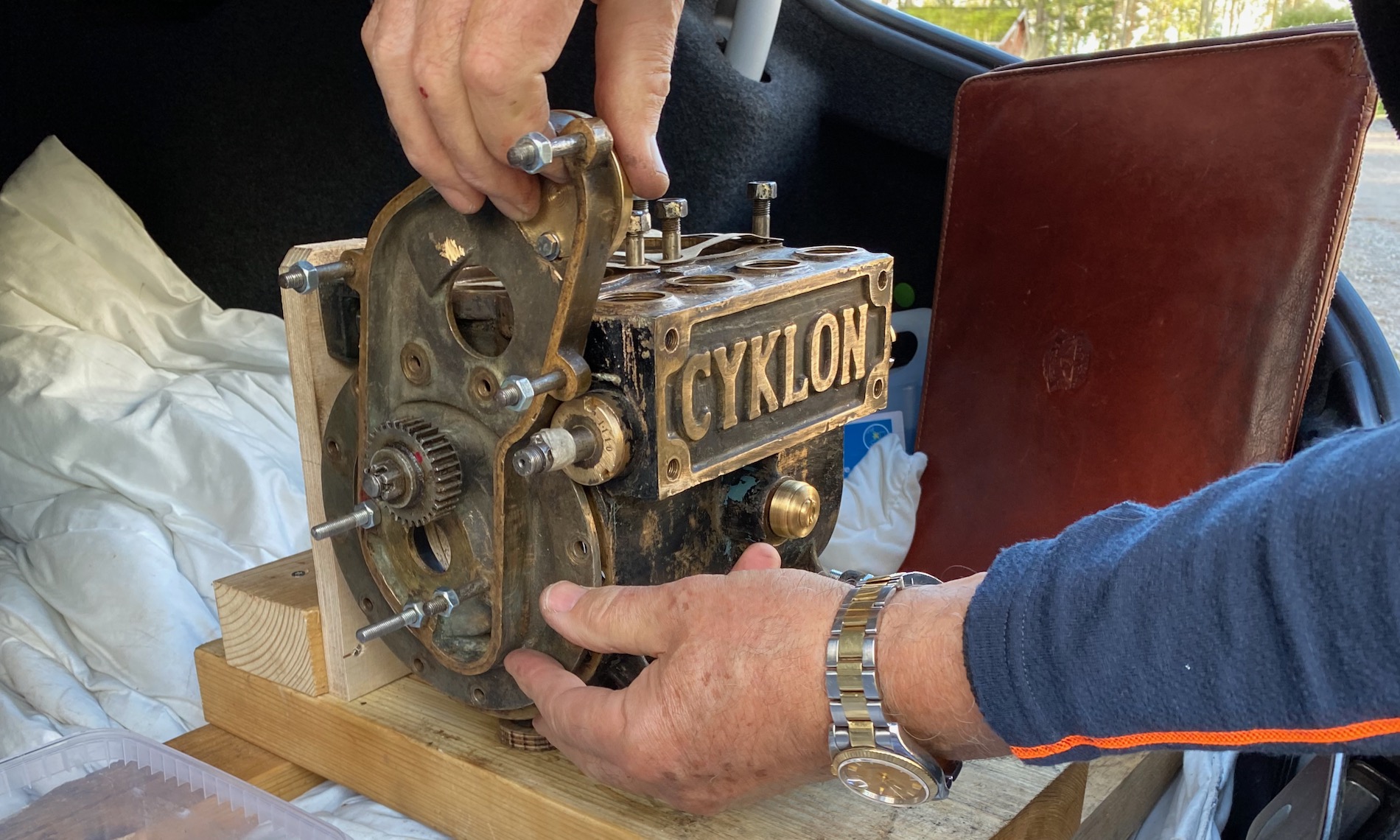 I Australien finns en annan entusiast som också renoverar en Cyklonette. Han gör saker och ting mycket omsorgsfullt och systematiskt och har har varit till en avgörande hjälp för smedsbyprojektet. Australiensaren har skickat ca 500 bilder av det egna projektet med detalj på detalj. Med hjälp av bilderna har vår chefskonstruktör gjort upp ritning efter ritning. Modeller har byggts i trä, mässingsdetaljer har gjutits och det har svarvats i hemmagarage och verkstäder. Och det har varit mycket jobb vid metallsvarven. Speciellt kopplingen och växellådan imponerar.