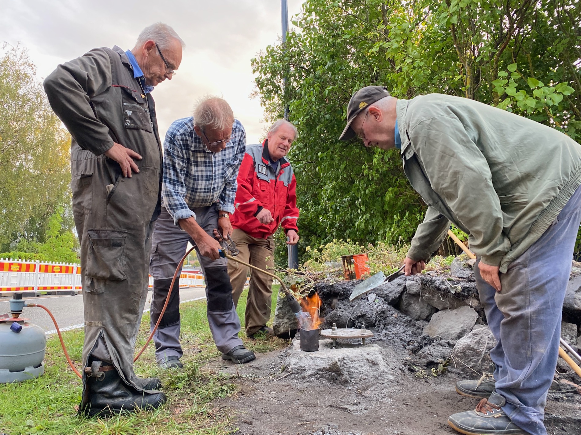 Ett av sommarens projekt har varit just en ny skylt. Det kommer att bli en skylt i metall, modell större. Det har brunnit i ässjan hela sommaren och nu börjar vi se resultatet av smedens jobb. Fundamentet vid vägen är också klart. Så i början av nästa säsong kan vi förhoppningsvis resa en ny och fin skylt.