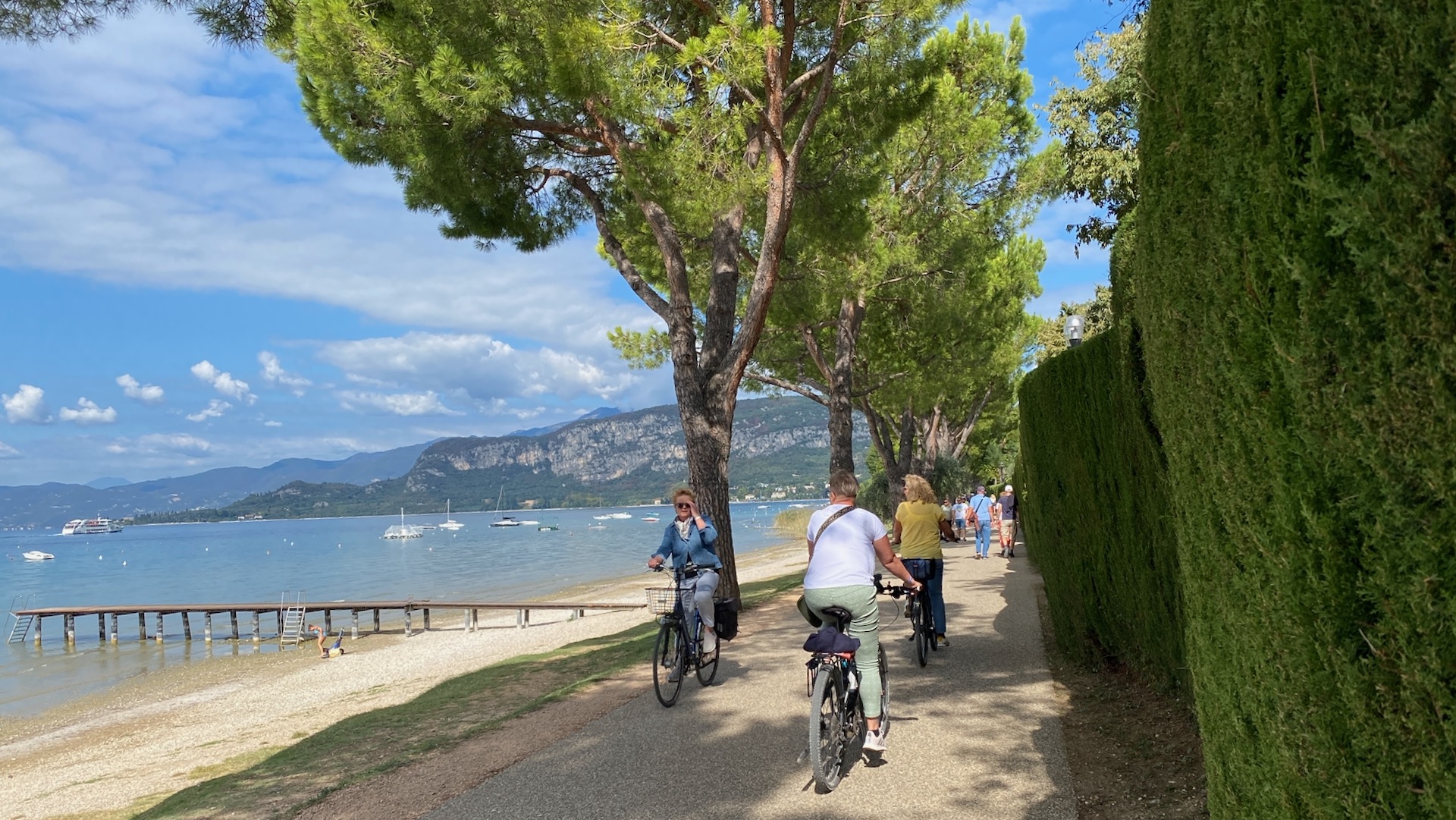 Tröskeln har varit hög för mig att nappa på gruppresor innehållande mycket program. Jag valde ändå att åka denna gång, mycket tack vare resmålet Garda. Nu i efterhand kan jag konstatera att det var ett bra beslut. Resan bjöd på en lagom blandning av fysiska aktiviteter plus en massa annat trevligt. Jag deltog endast i sådant jag hade intresse av. Det fysiska programmet bestod av bl.a. morgongymnastik, styrketräning, löpning, zumba, yoga, vattengymnastik, djuptöjning, cirkelträning, avslappning, vandring och cykling. Våra tre reseledare var engagerade och professionella. Hotel Poiano och dess närområde erbjöd en ypperlig miljö för fysiska aktiviteter. Hotellet låg någon kilometer från Gardasjön, strax utanför staden Garda.
