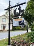 Skylten pryds också av två smeder i profil. Den figuren är utskuren ur en 8 mm tjock plåt med hjälp av laser på ett lokalt metallföretag.