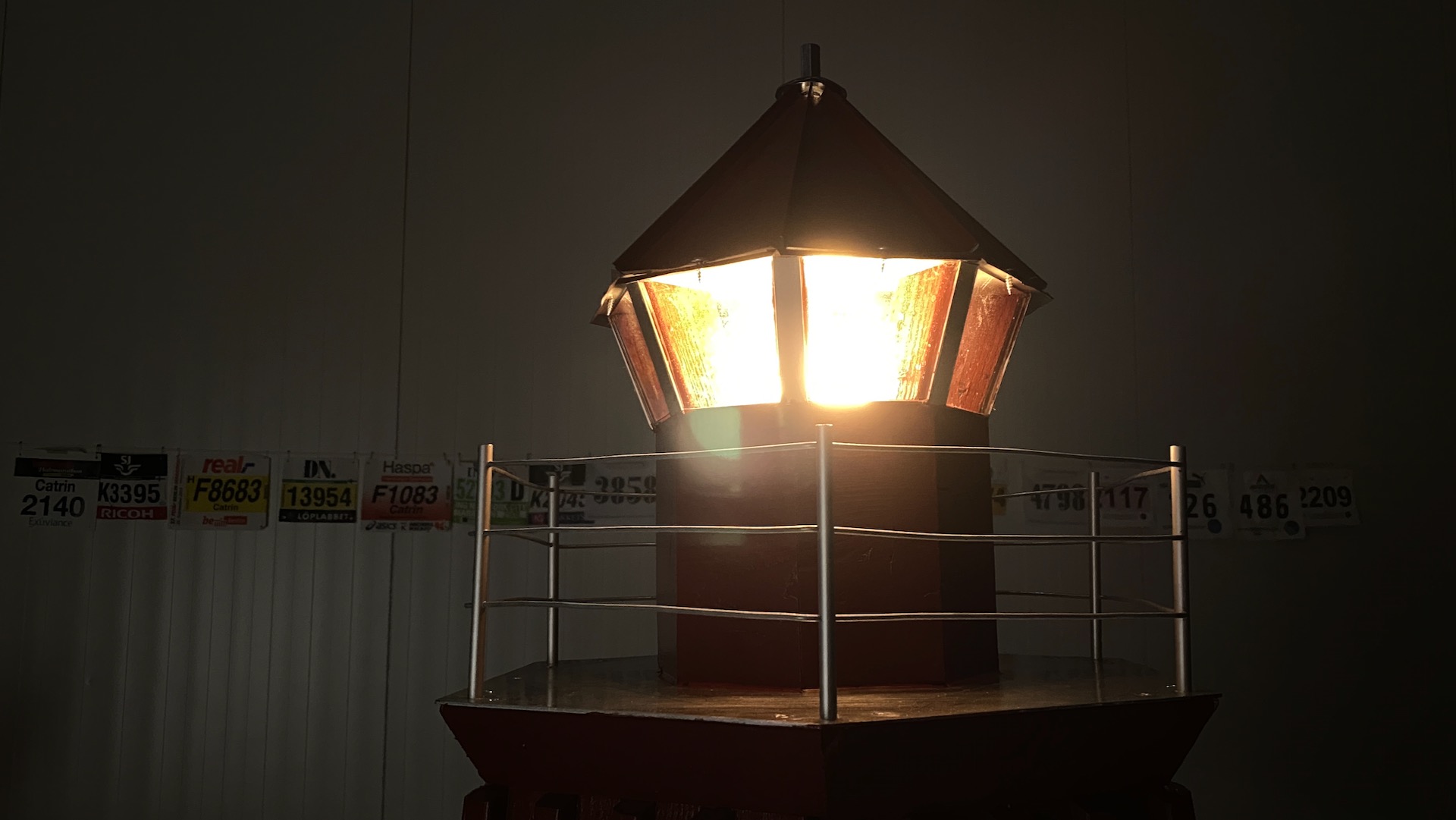 Det var från början tänkt att fyren skulle stå på havsstranden vid sommarstugan. Därför är fyren försedd med solpanel och batteri. Inte heller denna sommar fick jag den transporterad ut till holmen. Så risken är stor att den förblir kvar i garaget.