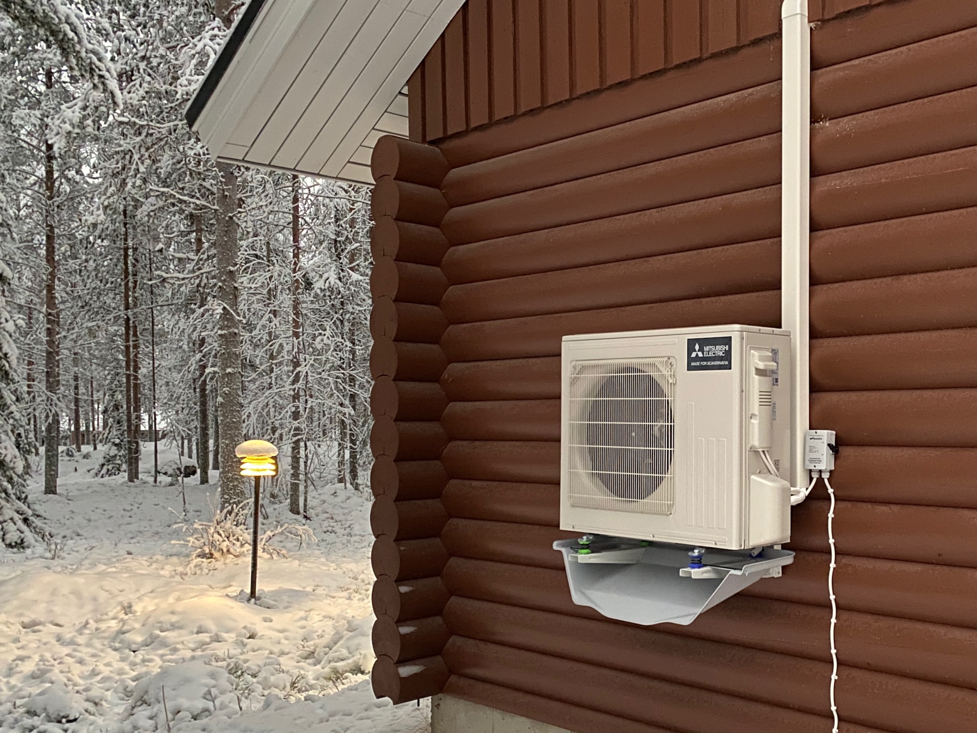 När jag åkte upp till Levi i början av december hade jag en värmepump i bagaget. En lokal entreprenör gjorde installationen följande dag. Nu är pumpen alltså i gång. Levererar värme och sparar energi. Bekvämt dessutom att kunna ställa innetemperaturen hemifrån med hjälp av telefonappen.