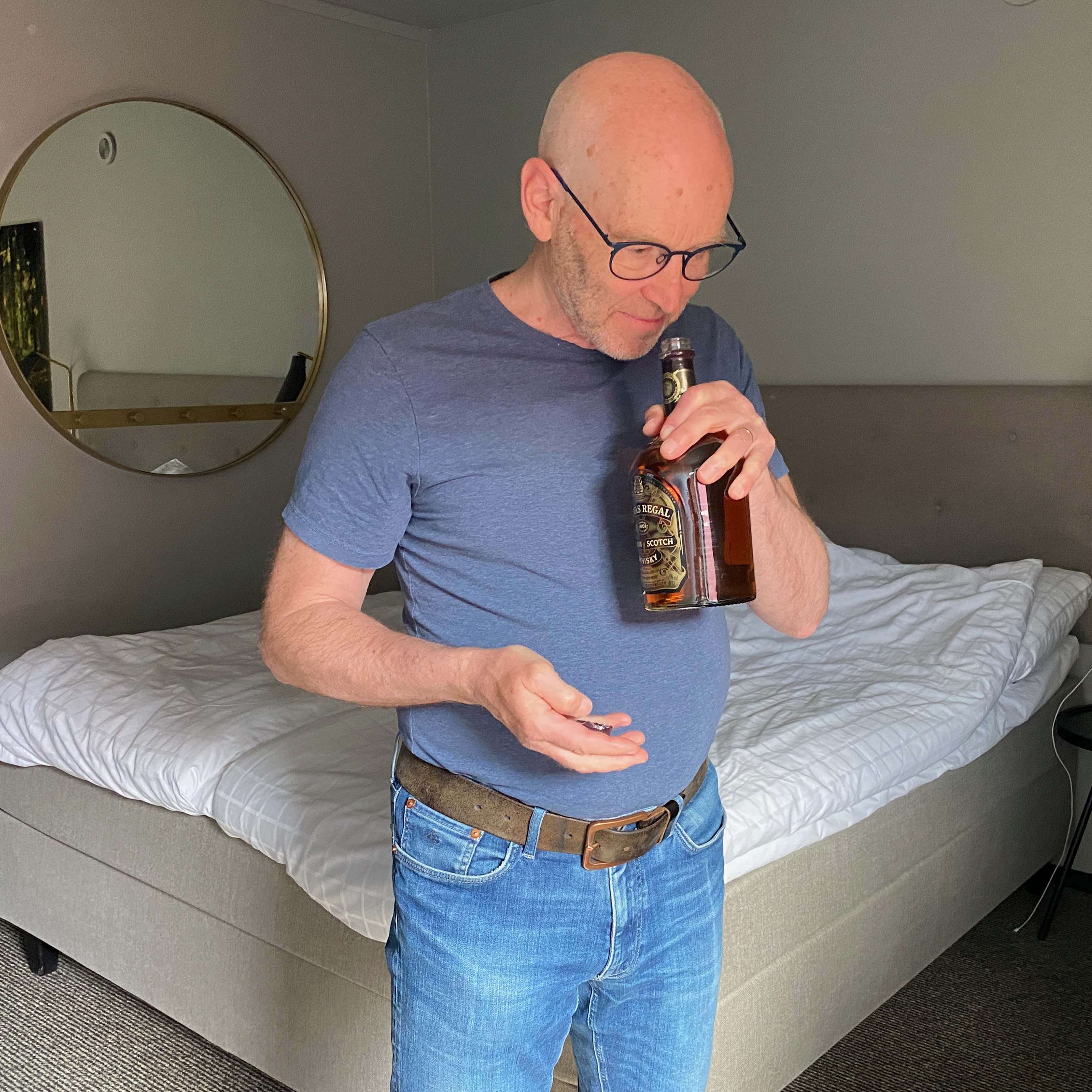 Historien är den att jag fick flaskan i present när jag fyllde 40. Att öppna en 12 årig Chivas Regal hörde inte till vanligheterna i min värld på den tiden så jag ställde undan flaskan i väntan på det rätta tillfället. Det rätta tillfället dök aldrig upp, eller så missade jag det bara. I något skede tog jag beslutet att spara den helt och hållet tills jag fyller 50.