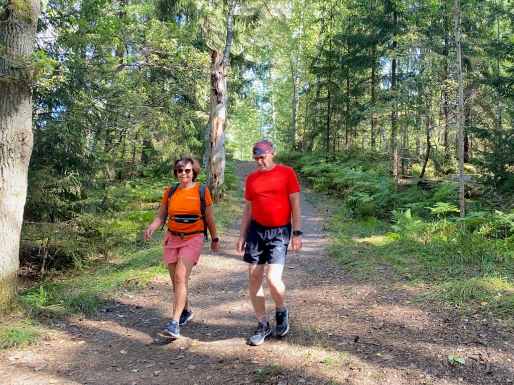 Idag beslöt vi oss för att promenera runt 10 km-slingan. Det blev en positiv upplevelse. Jag blev överraskad av att hela rutten, nästan, går längs skogsstigar. Det hade jag inte förväntat mig. Omgivningen var fin och terrängen så där lagom småkuperad. Trevligt med en så fin rutt så nära.