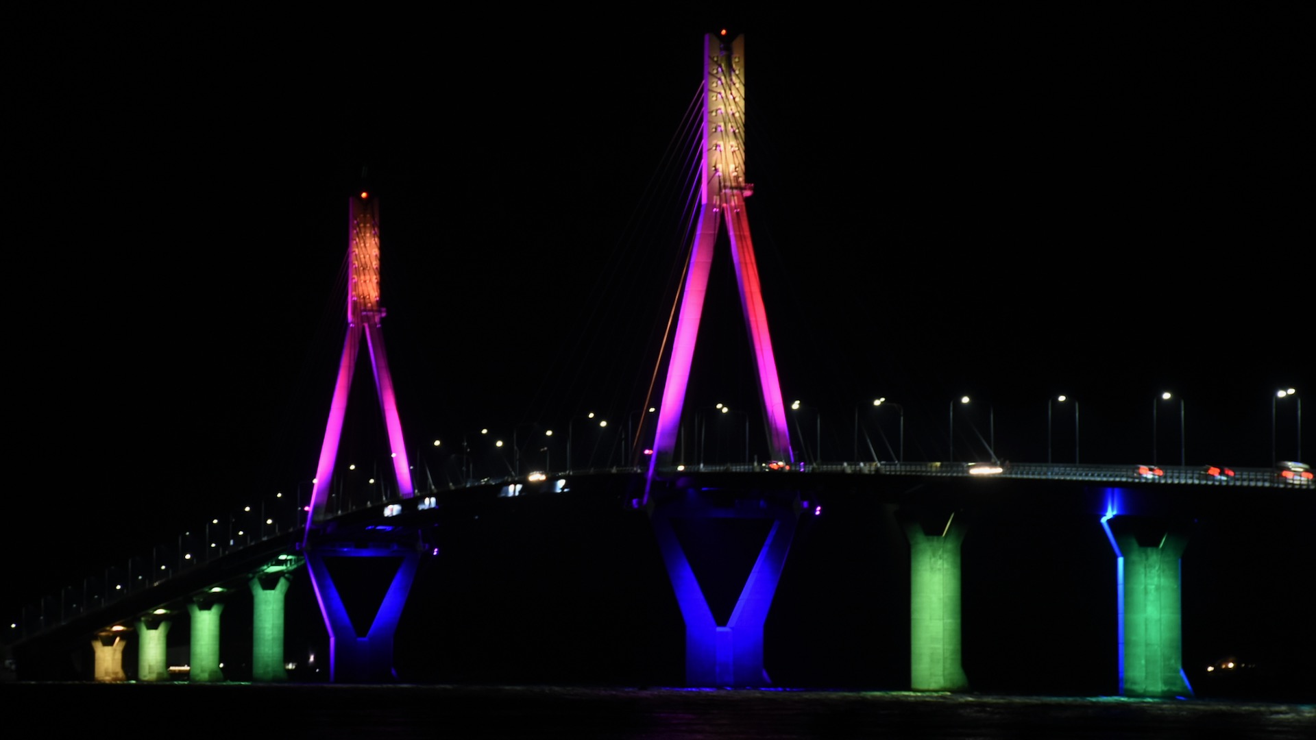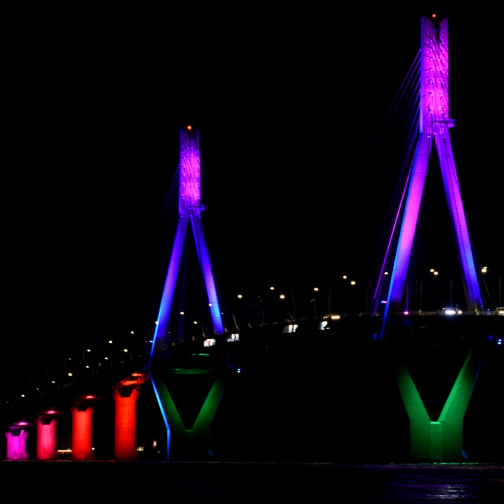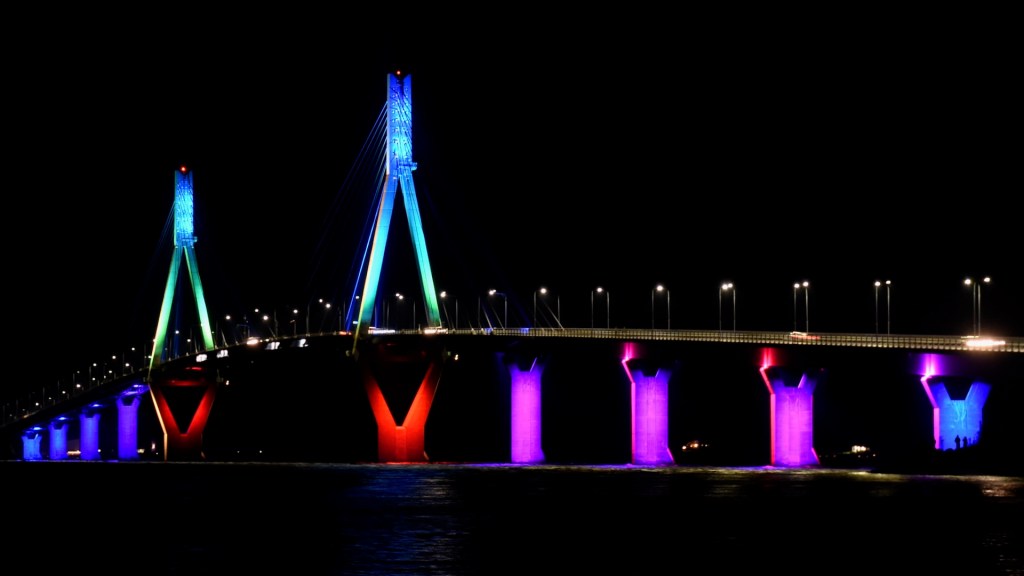 Hur som helst, det var invigning av den nya belysningen den 31 augusti 2024. Invigningen kallades Rainbow och bestod av några ljusshower där pylonerna och bropelarna upplystes i regnbågens alla färger. Antalet ljuspunkter är 76. En lågmäld men sevärd invigning skulle jag säga.