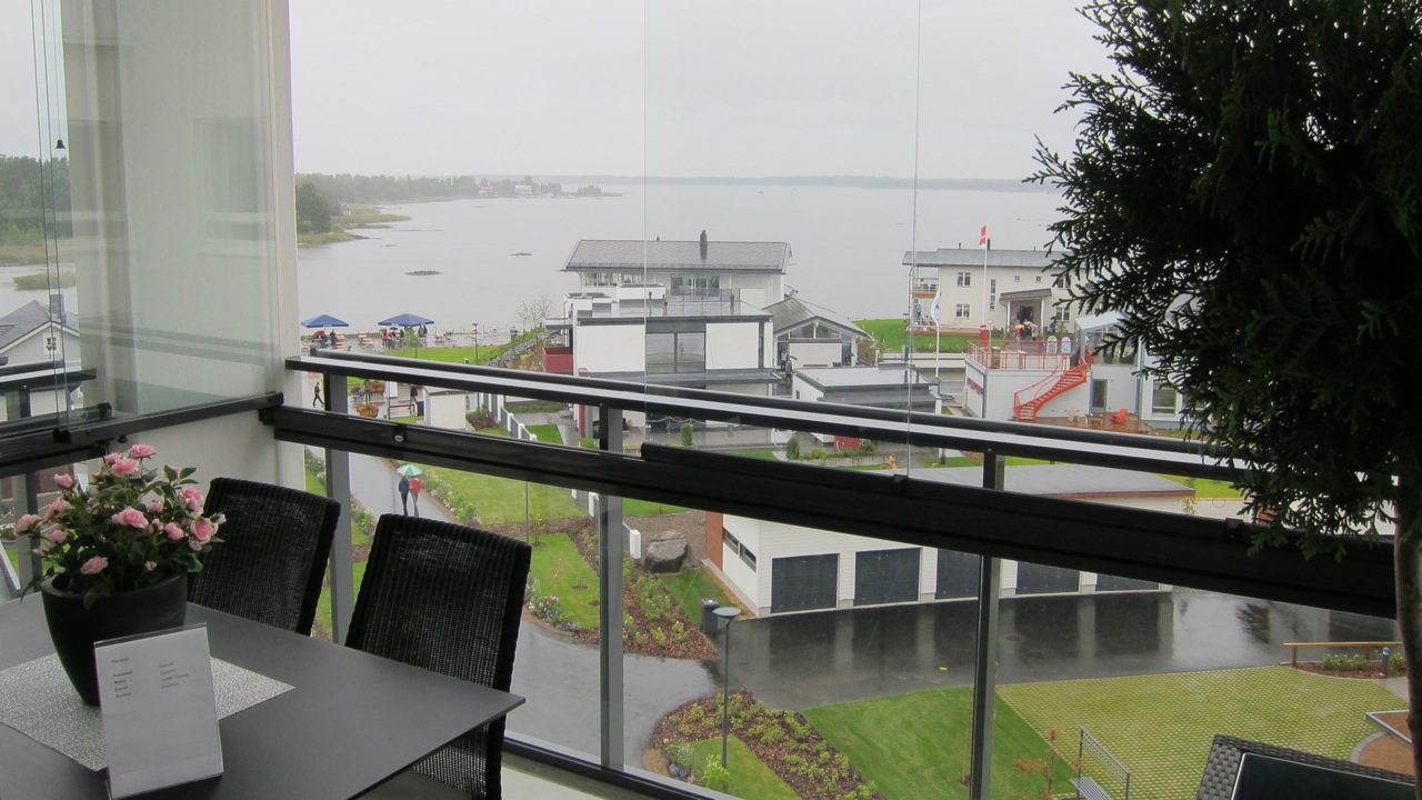 Årets mässområde var överraskande litet och kompakt. Därmed var det också lättbesökt. Lagom som mässområde kanske. Det allmänna intrycket är positivt. Området låg fint vid stranden. Och det såg ju ut att vara en riktig strand och ingen gyttjevik som i Vasa! Några exceptionella husmonster såg man inte till denna gång. Fast nog fanns det bostäder som jag inte gillade alls. Allra bäst gillade jag husen och lösningarna med den egna stranden. Mycket trevligt med de separata bastubyggnaderna, även om de var i minsta laget.
