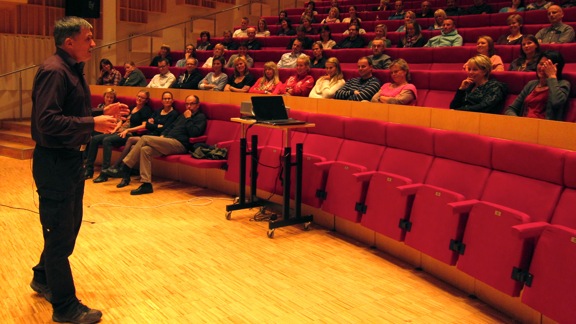 Ultralöparen Rune Larsson höll en intressant och medryckande föreläsning i Kulturhuset i kväll. Den handlade inte enbart om löpning, utan också om hur man i övrigt kan uppnå sina mål i livet. Han framhöll att tron på det man gör är väldigt avgörande. Men framför allt att glädjen hela tiden skall finnas med. Rune Larsson gav inte mycket för disciplinerade träningsprogram, utan menade att det blott och enbart skall handla om njutbar träning. Först då orkar man träna tillräckligt mycket.
