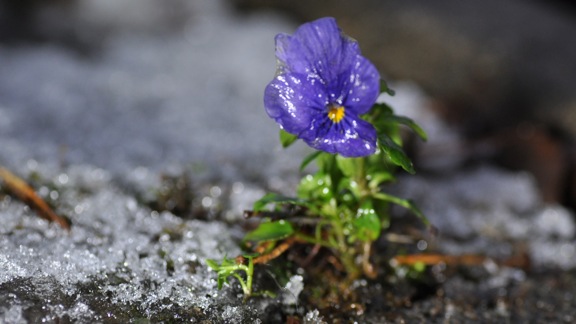 den lilla penséen besitter! Den ligger och kämpar bland snö och is och orkar blomma denna mörka årstid!