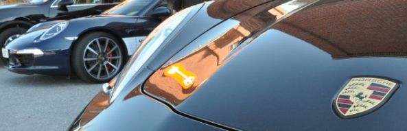 Inte ofta man ser så många porschebilar på ett och samma ställe i våra nejder. Men det hände i går när jag gick på lunch. De stod prydligt uppradade mitt framför ytterdörren. Det gick bra att spegla sig redan på utsidan.