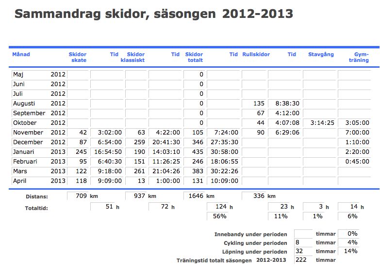 Tid totalt på skidor: 124:36:51 (h:min:sek)