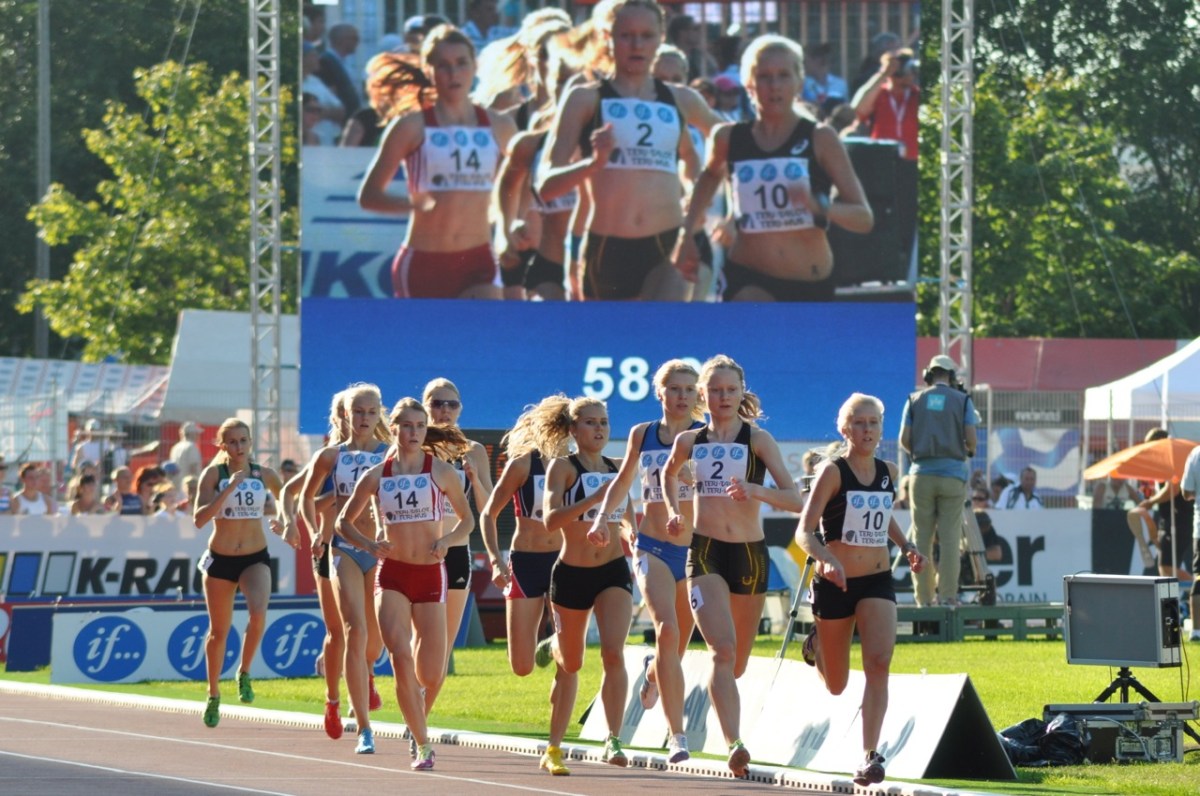Kalevankisat02270713 Föregående Nästa Damernas 800 m. Segraren Johana Matintalo på andra plats efter första varvet.