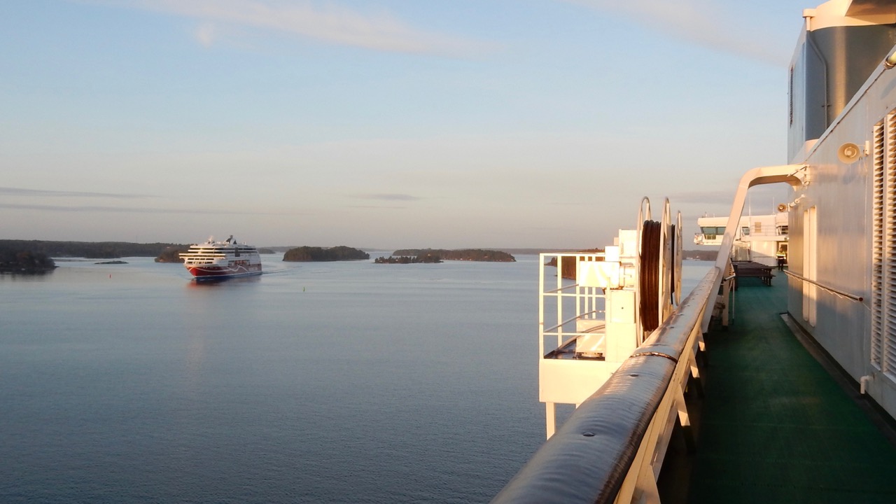 Söder om Vaxholm delar sig farleden och lämnar några småholmar mellan sig. Just där sökte jag mig ut på däck. Och visst, jag bongade bryggan på en av holmarna. Alltså inspelningsplatsen för Renées brygga.