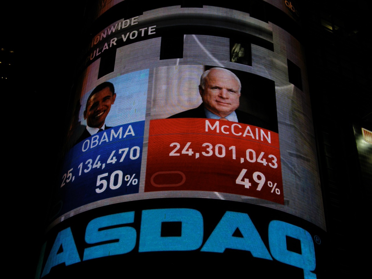 För åtta år sedan hade jag nöjet att följa valvakan på plats och ställe i New York. Besökte då bl.a. Times Square och Rockefeller Center där det var fin stämning när Obama blev president. Just nu är jag bara glad att befinna mig långt därifrån.