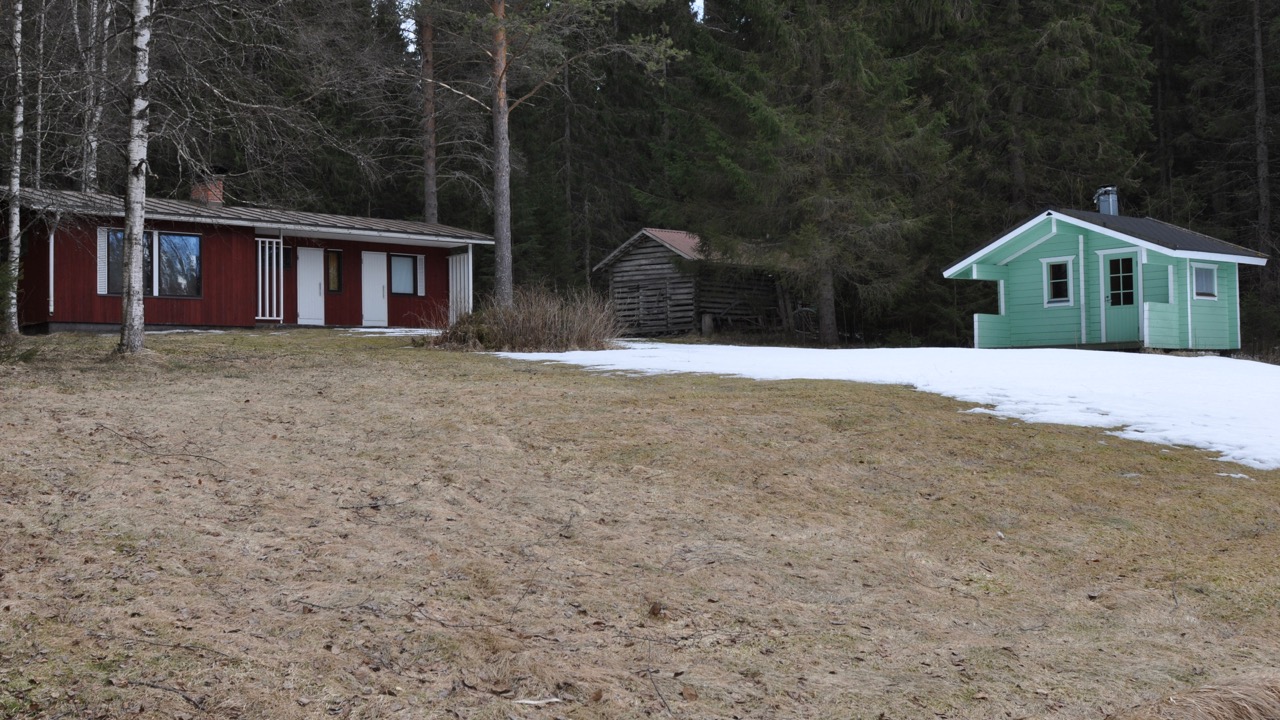 Sommarstället bildar en fin helhet med en huvudbyggnad, stockbastu, lider, matkällare och en timrad lada. I stugan på ca 60 kvadratmeter finns kök, allrum, två sovrum och dessutom ett gästrum och bastu med egna ingångar. Stugan är ett robust och gediget bygge från 70-talet. Det kan jag personligen intyga eftersom jag själv var med och byggde. Elanslutning finns.