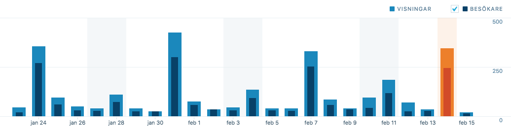 För ett par år sen skrev jag ett blogginlägg om inspelningsplatsen för TV-programmet Renées brygga. Inlägget lockar besökare ännu två år senare. Folk är nyfikna på var inspelningsplatsen finns och googlar flitigt på onsdagskvällarna när programmet sänds, och lite på söndagarna när reprisen går, och hamnar då in på Bogartsblogg. Det syns i läsarstatistiken som WordPress presenterar.