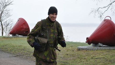 Stolle på fotmarsch den 5 maj 2012. Ser inte helt uppgiven ut trots tufft program!