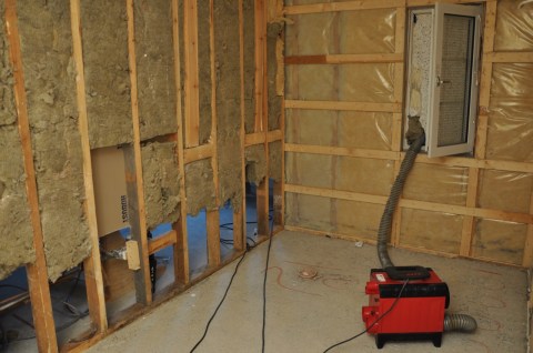 Badrumsrenoveringen som startade för fyra veckor sedan framskrider långsamt. Det är torkningen som tar tid. Inte mycket att göra åt, bara att vänta. Hösten är inte världens bästa tid för torkning heller. Fuktigheten i betongen ligger fortfarande över 90% efter drygt 3 veckors torkning. Den borde fås ner till 85%.