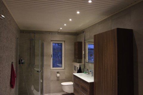 Min insats blev inte överdrivet stor denna gång. Förutom planeringen så gjorde jag det minimala elarbetet. Belysningen förnyades helt och just den biten är jag lite smånöjd med (läs helnöjd). Jag lyckades med konststycket att fälla in LED-armaturer i det befintliga taket utan att behöva riva. Operationen lämnade inga synliga spår och takbelysningen fungerar nu med både dimmer och närvarogivare. Nice!