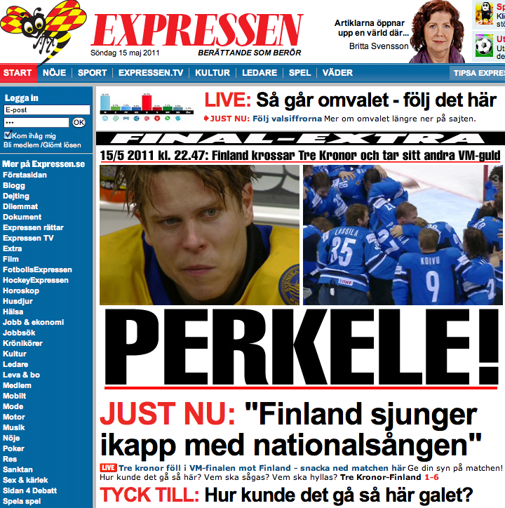 En av de mest ansedda svenska sportjournalisterna skrev inför finalen: ”Sverige slog Finland med rätt klara 4-2 i gruppspelet, där den matchens stora lirare avgjorde med sitt andra mål och 4-2 en bit in i tredje perioden. En match där svenskarna vann skotten med 30-20. Så, tyvärr Finland. Jag tror inte det blir en ny knall i finalen.”