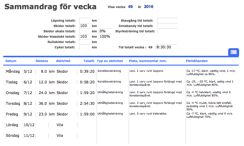 En lapplandsvecka går snabbt. För min del är det dags att säga tack och hej till Levi för denna gång. Det blev fem dagar med skidåkning vilket jag är mycket nöjd med. Vädret och föret var hur bra som helst, det gick att skida varje dag.