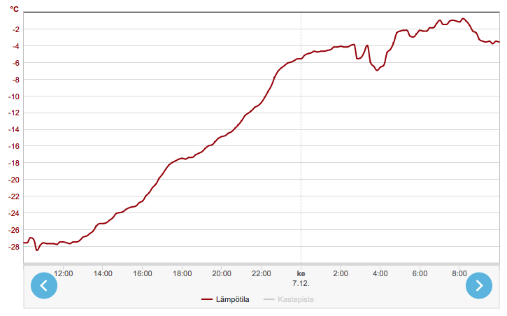 Jag gillar stigande kurvor. Tyvärr handlar det inte om formkurvan denna gång, men väl utetemperaturen. I dag var en helt annan dag vad vädret beträffar. Ca. -4 °C, helt perfekt!