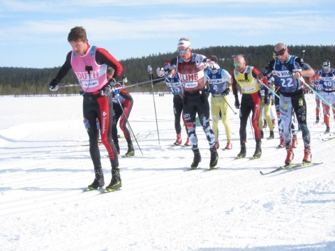 Herreliten passerar Äkäslompolo. Oskar Kardin i täten.