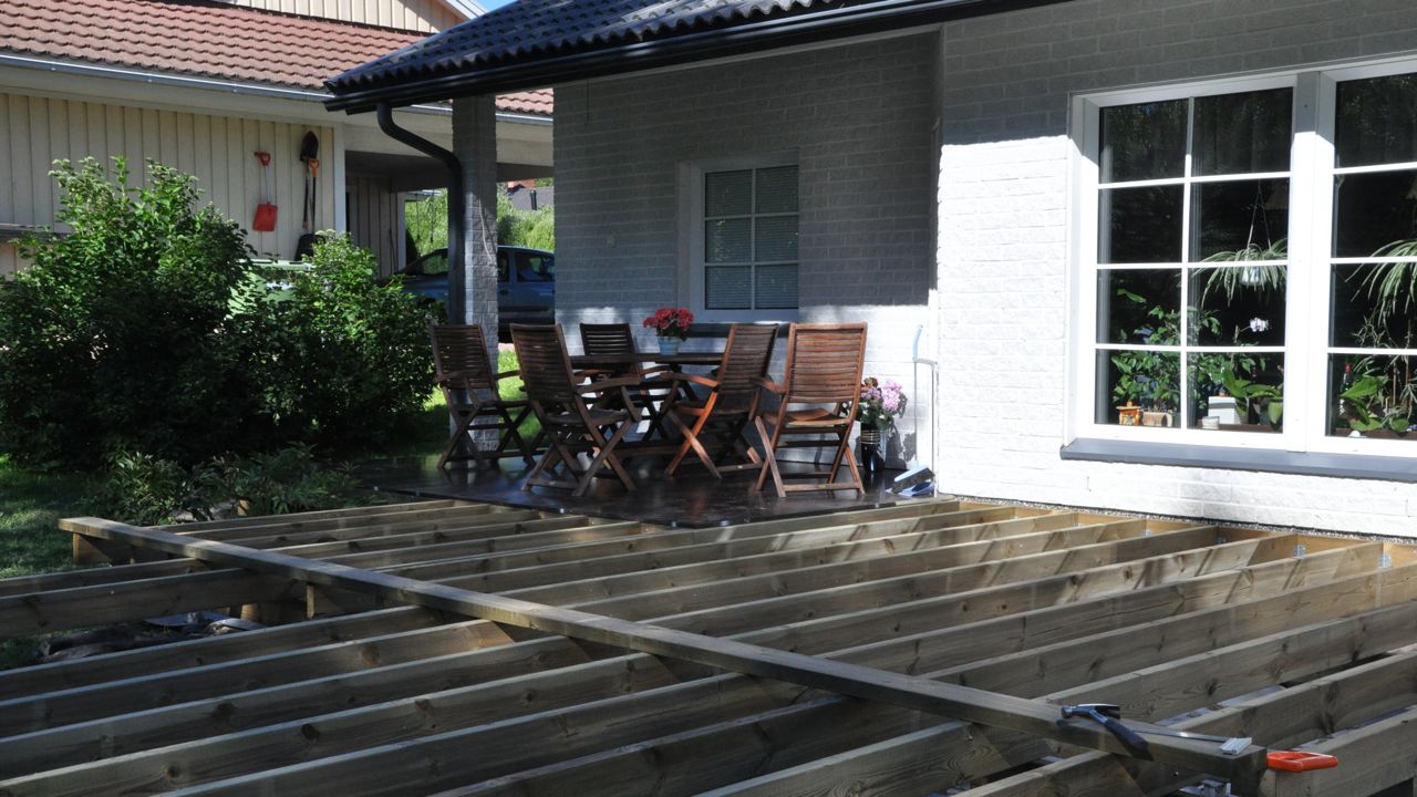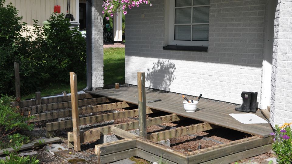 Ni tycker säkert att årstiden är helt fel för terassbygge. Och jag håller med, men bara delvis. Låt oss se det på det sättet att jag för en gångs skull gör något med god framförhållning. När vårsolen tittar fram om ca. 5 månader, ja då har terassen redan länge varit klar.